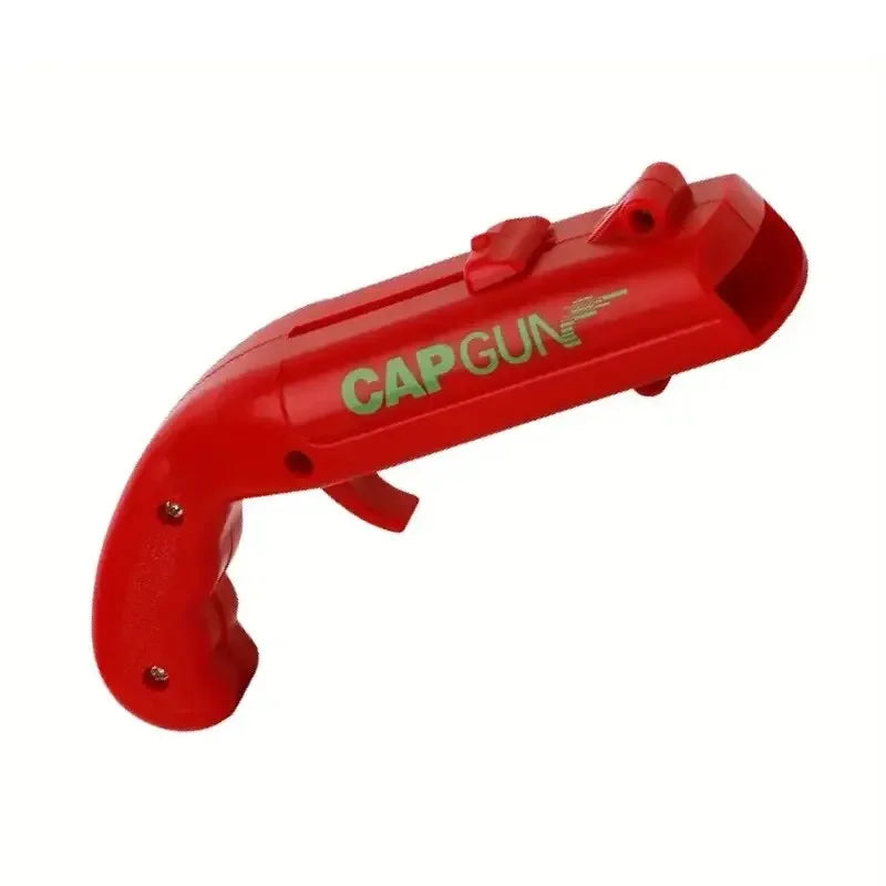1 abridor de cerveza, lanzador de tapas voladoras, juego de beber para fiestas, juguete de cocina, accesorios de bar, destapador de pistola.