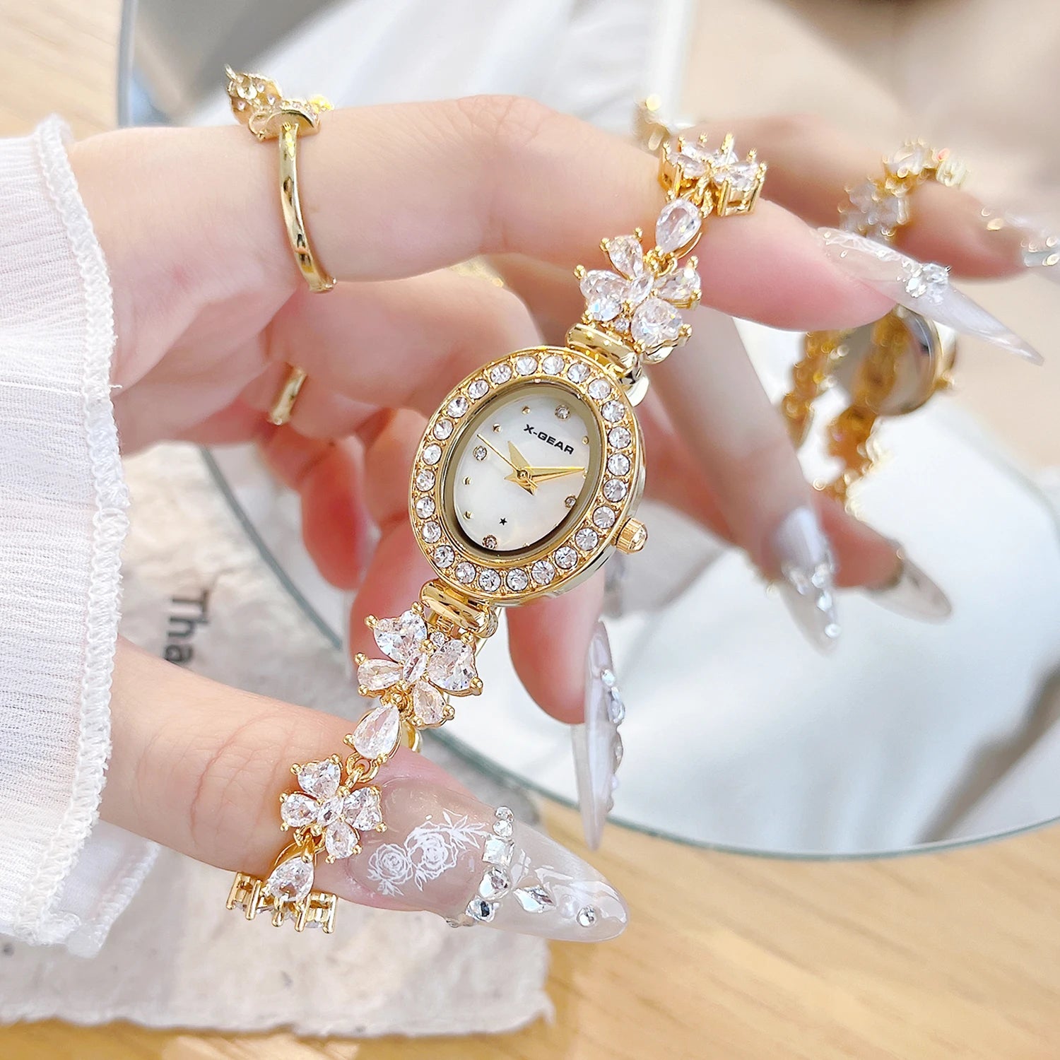 Reloj de cuarzo para mujer 2025: elegante y delicado brazalete con correa de mariposa, esfera de nácar y lujosos diamantes de imitación.