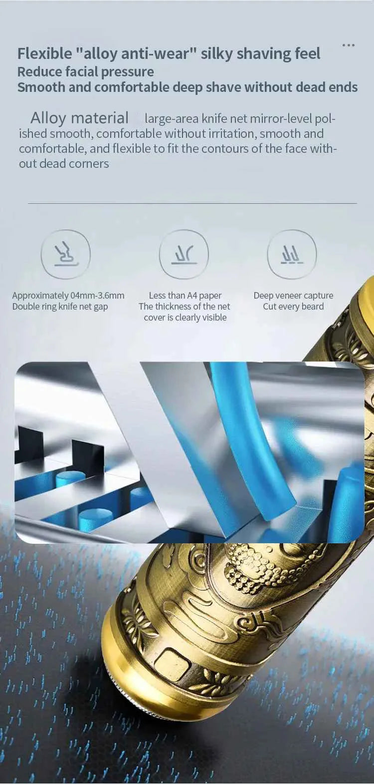 The electric shaver adopts precision blade technology, high-speed motor, and the high-efficiency floating shaver head fits the contours of the face, neck and even chin for fast and effective shaving.