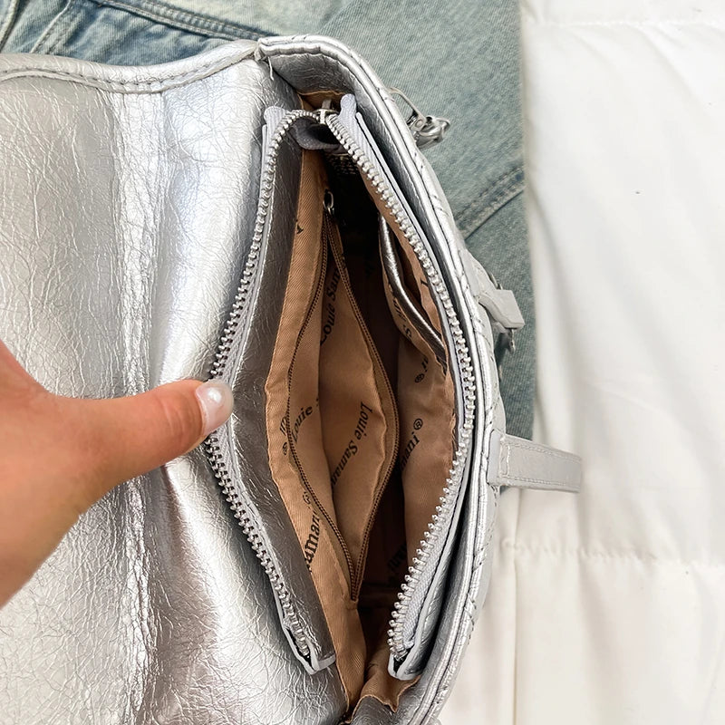 Bolso de mano de diseño moderno para mujer, de cuero de lujo, espacioso, bandolera con bolsillos laterales.